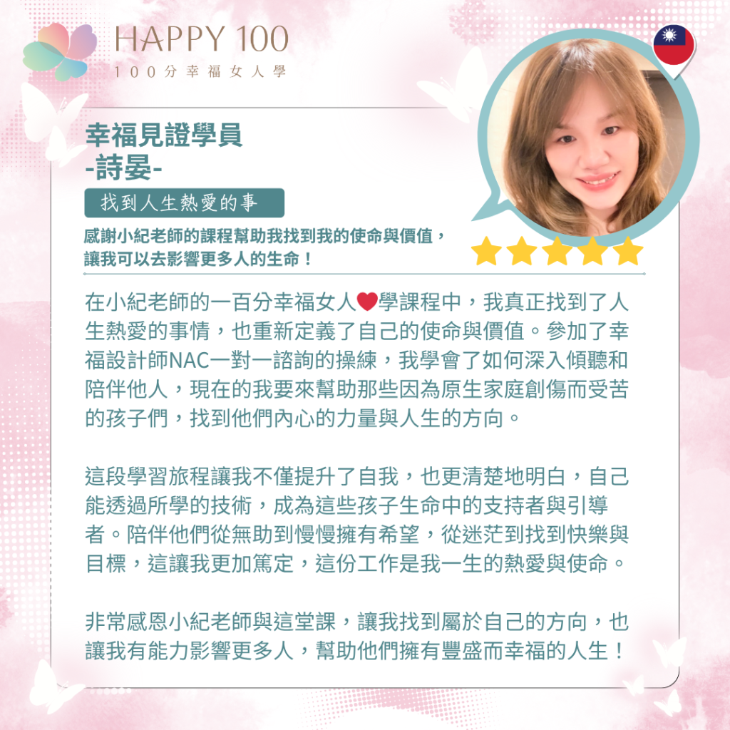 ✨ 《100分幸福女人學》課程,由小紀老師親自設計,帶妳一步步看見潛意識中的盲點,學會建立清晰的邊界,找到屬於自己的價值與定位。