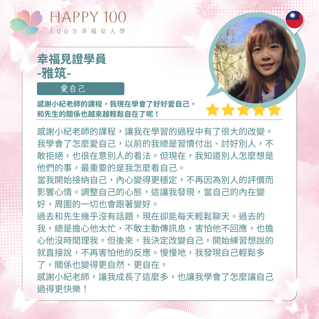 在參與《100分幸福女人學》課程,以及 21 天鏡子練習後,